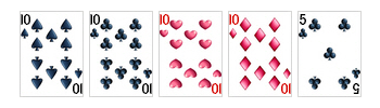 Тройка (Three of Kind) – три карты одного достоинства. Если Three of Kind на двух или более руках, выигравшая определяется по старшинству карт – Короли старше Дам, Дамы старше Валетов и т.д.