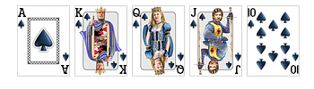 Роял Флеш (Flush Royal) – пять старших карт одинаковой масти, идущие по порядку, начиная с десятки.